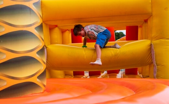 Oud of jong, dat maakt niet uit als je op een springkasteel speelt. En wat voor springkasteel... Een groot hindernissenbaan met verschillende obstakels.