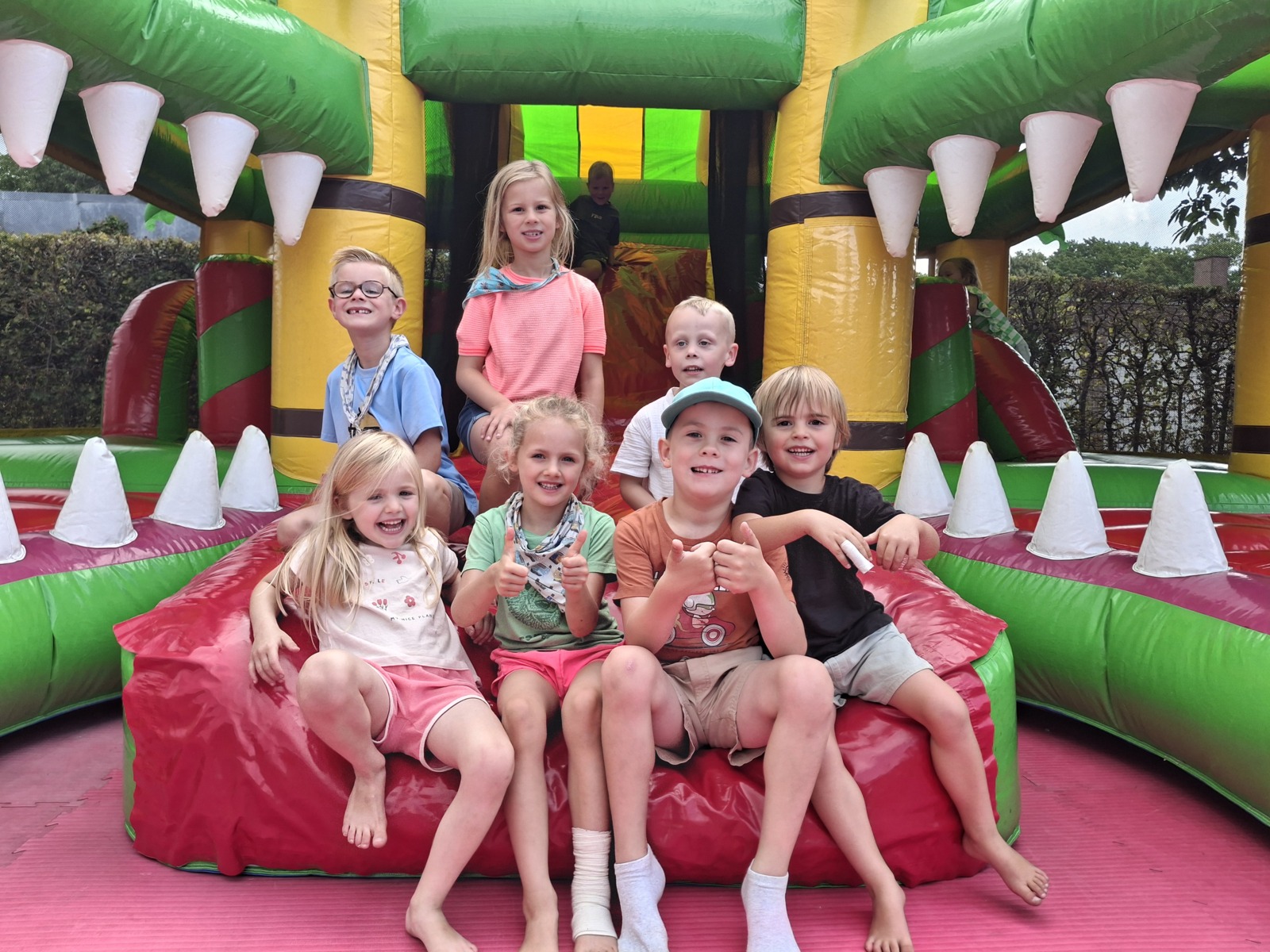 Op onze kleuterkampen volgen we het vertrouwde ritme van de kleuterschool, zodat iedereen zich meteen thuis voelt. We knutselen, dansen, spelen en laten onze fantasie alle kanten uitvliegen. Het plezier vindt zoveel mogelijk buiten plaats, in de tuin en op de speelplaats, maar bij te warm weer of regen trekken we knus naar binnen. Er worden gezellige verhaaltjes voorgelezen, we leren nieuwe dingen ontdekken en kunnen ons geregeld volledig uitleven op het springkasteel. Elke week krijgt het kamp een nieuw jasje met een ander thema, vol verrassingen en nieuwe avonturen.