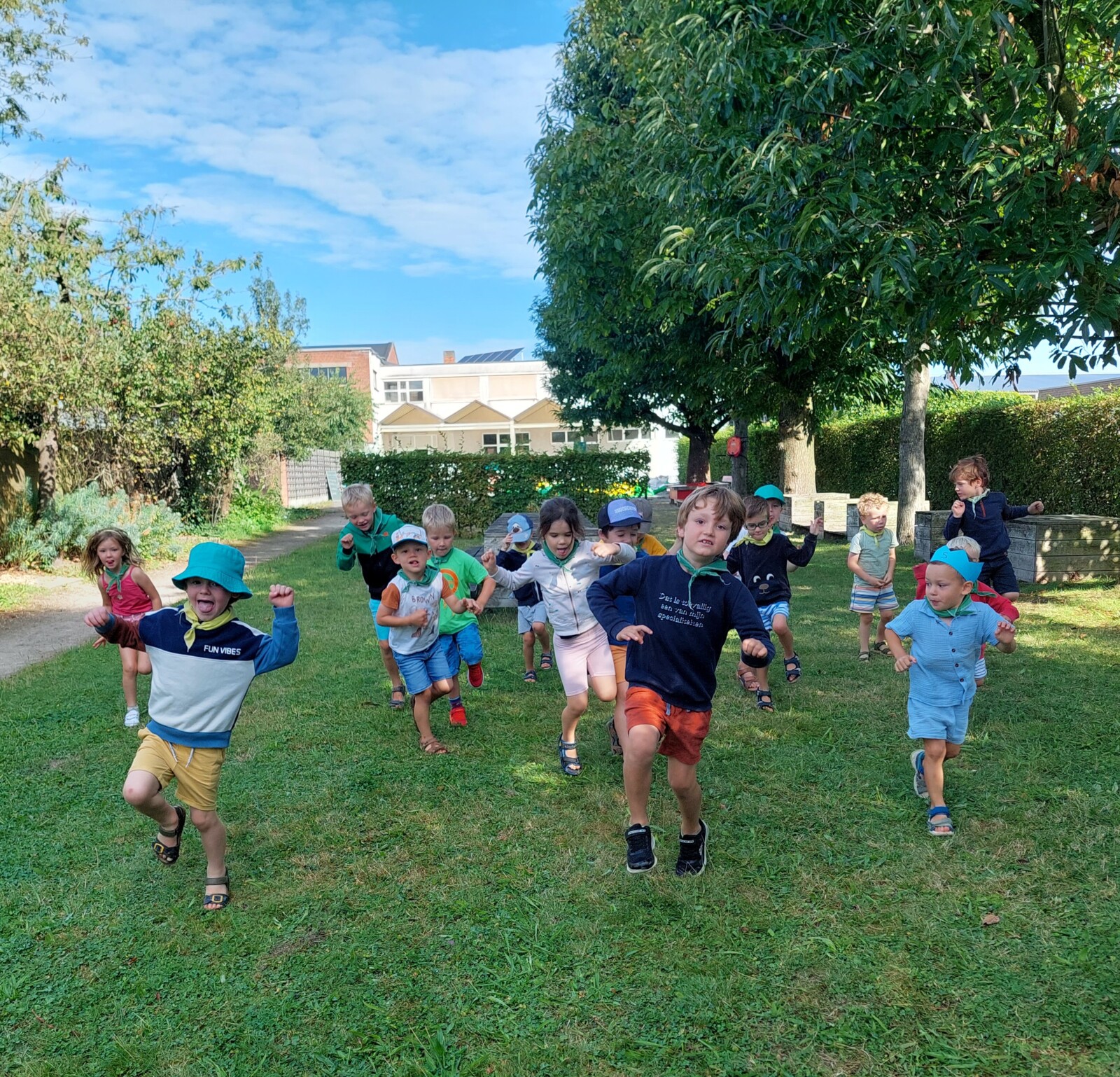 Op onze kleuterkampen volgen we het vertrouwde ritme van de kleuterschool, zodat iedereen zich meteen thuis voelt. We knutselen, dansen, spelen en laten onze fantasie alle kanten uitvliegen. Het plezier vindt zoveel mogelijk buiten plaats, in de tuin en op de speelplaats, maar bij te warm weer of regen trekken we knus naar binnen. Er worden gezellige verhaaltjes voorgelezen, we leren nieuwe dingen ontdekken en kunnen ons geregeld volledig uitleven op het springkasteel. Elke week krijgt het kamp een nieuw jasje met een ander thema, vol verrassingen en nieuwe avonturen.